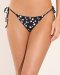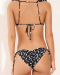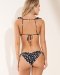 Description: REVERSIBLE bikini. Reverses to a Maajical surprise print. Sliding triangle top with removable soft cups, less coverage, adjustable straps, tie back, ring detail, special lace toecaps. Tie side intermedium bottom with elastic band detail.