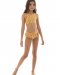 Description: Kids bikini set. Crop top, adjustable straps, mid rise. Full coverage panty with ruffle detail.