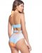 Description: Bandeau bra top with soft removable cups, may be tied on the neck or make a bow, High waisted cheeky cut bottom with belt detail.