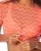Description: Crop top with mesh detal, short sleeve, textured fabric.