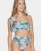 Description: assymetric top with soft cups and ties at the shoulder. Latin cut panty.
